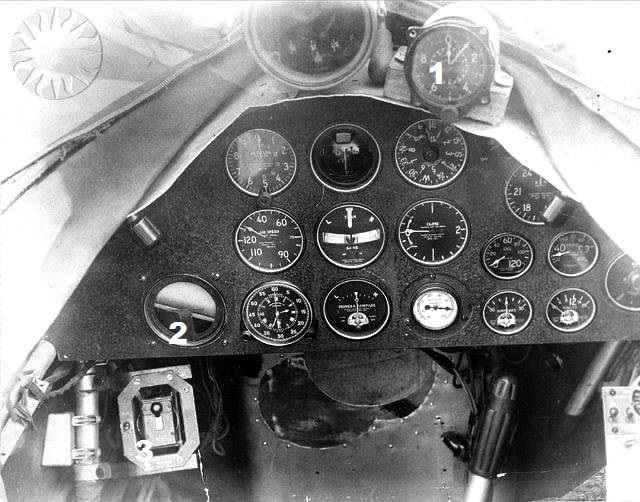 The cockpit (Figure 3) was outfitted with a number of the standard cockpit instrument displays of the time as well as the special ones developed by the Sperry Gyroscope Company, the Kollsman Instrument Company and the Radio Frequency Laboratories. Among them were the: Kollsman Altimeter (#1, upper right in Figure 3), Standard Altimeter, Magnetic Compass, Air Speed Indicator, Sperry Artificial Horizon (#2, first row left in Figure3), Turn & Bank Indicator, Rate of Climb Meter, Tachometer, Chronometer, Earth Inductor Compass, Oil Pressure, Oil Temperature, Ammeter, Voltmeter and the Vibrating Reed Localizer Display (#3, lower left in Figure 3). The NY Times which reported the flight in detail stated that only three specially designed instruments had been installed and included a photo of the cockpit instrument panel identifying each of the instruments.
