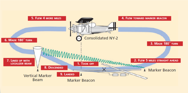 On 24 September 1929, the first blind takeoff, flight and landing occurred at Mitchel Field, Garden City, NY in a Consolidated NY-2 biplane piloted by Lt. James Doolittle. Equipped with specially designed radio and aeronautical instrumentation, it represented the cooperative efforts of many organizations, mainly the Guggenheim Fund’s Full Flight Laboratory, U.S. Army Air Corps, U.S. Dept. of Commerce, Sperry Gyroscope Company, Kollsman Instrument Company and Radio Frequency Laboratories.