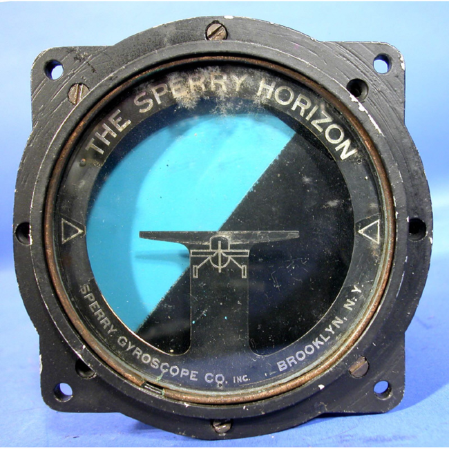Two gyroscope based instruments were developed for the Full Flight Laboratory to be installed in the NY-2 Husky as part of the cockpit instruments. An artificial horizon display to show an aircraft’s attitude relative to the ground and a directional gyro which would not be affected, as would be a magnetic compass, due to magnetic field anomalies, suspension friction and the alignment lag of the indicator pointer during turns. Doolittle had proposed to Elmer Sperry, Sr., the design of an integrated instrument whose display depicted that of a directional gyro superimposed on an artificial horizon.