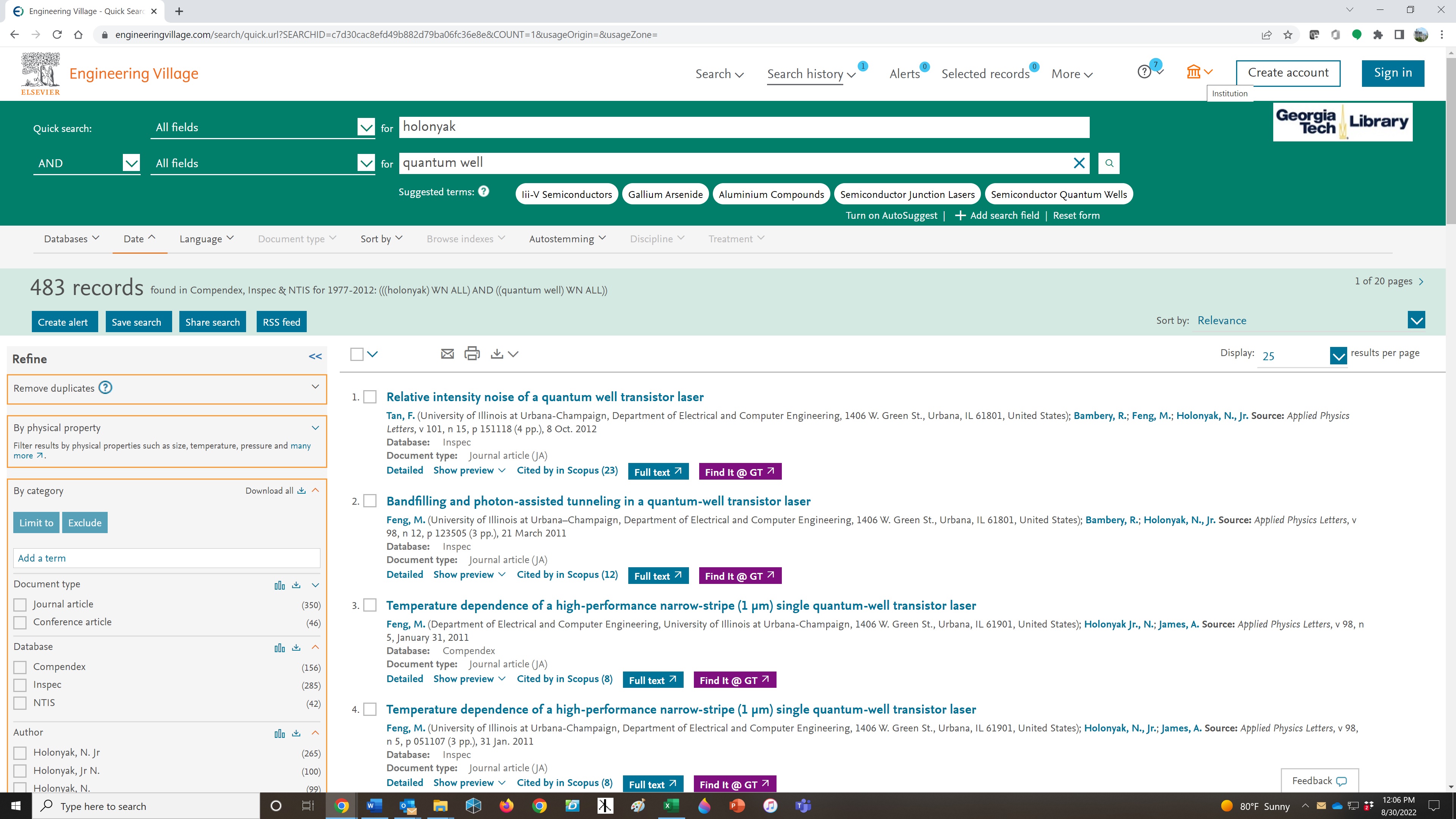 References Uploaded: [1] E. A. Rezek, et al., Appl. Phys. Lett. 31, 288 (1977). E. A. Rezek, et al., IEEE Trans. Electron. Dev., ED-24, 1204 (1977). [2] According to an Engineering Village website search, N. Holonyak, Jr. has authored or co-authored over 396 reviewed technical journal papers on “quantum-well lasers” and related device properties in the period 1977-2012. Search performed 09-01-2022. [3] For example, Spectra Diode Labs (SDL) commercialized the high-power QW LD in an SBIR Granted in 1994 by BMDO to SDL for quantum-well laser diode production. [4] L. Esaki and R. Tsu IBM J. Res. Dev. 14, 61 (1970). [5] L. L. Chang, et al., J. Vac. Sci. Technol. 10, 11 (1973). [6] R. Dingle, et al., Phys. Rev. Lett. 33, 827 (1974). [7] J. P. van der Ziel, Appl. Phys. Lett. 26, 463 (1975). [8] R. C. Miller, et al., J. Appl. Phys. 47, 4509 (1976). [9] W. T. Tsang, et al., Appl. Phys. Lett. 35, 673 (1979). [10] https://www.globenewswire.com/news-release/2022/06/14/2462478/0/en/Laser-Diode-Market-is-estimated-to-Develop-at-a-CAGR-of-11-6-during-the-Forecast-Period-Observes-TMR-Study.html, accessed 08-29-2022. [11] https://www.yahoo.com/now/led-lighting-market-research-report-135900013.html, accessed 08-30-2022.