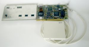 With a standard in place, Steve Jobs of Apple Computer decided to add wireless communications to the MAC books. He requested proposals from the various vendors. All were happy to oblige, but just one accepted the challenge of the $100 retail price requirement when the price point was still at around $350. It was the management of the WaveLAN-team that took the challenge and prepared a manufacturing environment streamlined to produce large quantities at low cost. At the MACWorld on July 21st, 1999, Apple Airport was launched [13] with the PC card (Figure 6) at $99 and the access point at $299 (Figure 7). At the same time, the WaveLAN-team, now with the corporate name of Lucent Technologies, launched their own PC card (Figure 8) and access point for similar prices. Immediately, all PC vendors queued at the engineering group with the request to develop a version for their own market. Apple requested a 2 Mbit/s product, but received an 11 Mbit/s product, which was according to the IEEE 802.11b extension of the standard. The result of a joint proposal of the WaveLAN team and Harris Semiconductors.